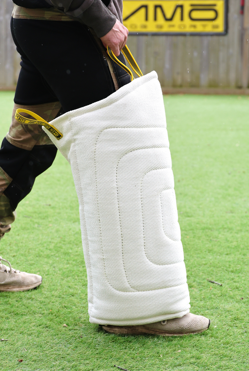 The AMO DOG SPORTS no.5 PRO Leg Sleeve is the firmest sleeve in our collection for the toughest and most advanced dogs. Made by hand with premium imported French Linen and designed in the Belgian style for maximum hardness. This sleeve offers excellent protection for training all Ringsport exercises and working police K-9s in tactical training scenarios. Features include a nylon top handle for control and an extra long heavy duty velcro strip to ensure a secure closure. The front of this leg sleeve is reinforced with a double layer French Linen for extra longevity. Quality construction with a durable heavy nylon interior to wick away moisture, promoting comfort and ventilation during training sessions.